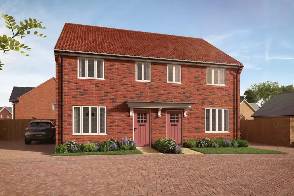 Discover Plot 23, The Bacton, a stylish two/three bedroom semi-detached home for sale in Thurston, Suffolk, close to Bury St. Edmunds. The ground floor consists of a spacious lounge, which leads into the stylish open plan kitchen / dining area with a hidden utility area and French doors to the rear west facing garden. A convenient cloakroom completes the ground floor. The first floor is home to two double bedrooms and a home office that could be used as a third bedroom, a nursery or a walk-in wardrobe. The master bedroom benefits from a private en-suite shower room. Across the landing is your family bathroom, brilliant storage completes this home. Externally, there is a private driveway with parking for two vehicles. This home also benefits from an Air Source Heat Pump and an EV charging point.