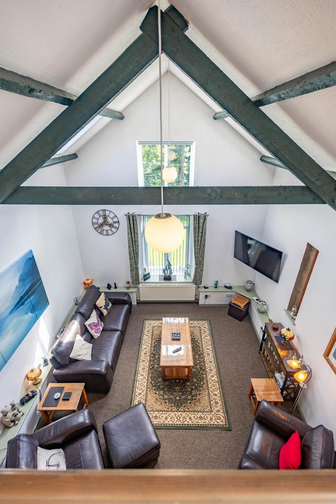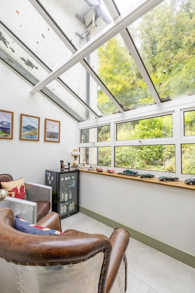 20' 1" x 14' 6" (6.12m x 4.42m). With an impressive vaulted ceiling, free standing wood burner, radiator, two Velux roof windows, quarry tiled flooring.
