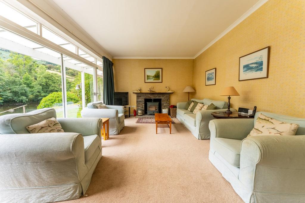 Nestled within ten acres of woodland, lawns, rhododendrons, and magnolias, the lodge offers direct access to a scenic riverside walk along fast-flowing rapids and peaceful pools. The spacious lodge features six double bedrooms, two with en-suite shower rooms, plus four additional bedrooms and two further bathrooms. There is a welcoming entrance hall, a generous living room with a stone fireplace and Clearview log burner, and a dining room. The fully fitted kitchen includes a bay window with a seating area and a large table overlooking the renowned Cafn Pool.