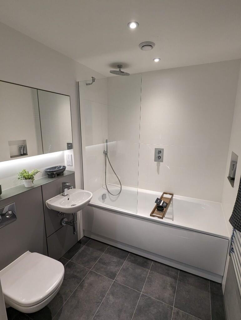This apartment has one en-suite and one main bathroom. They have been designed with style in mind and each feature: