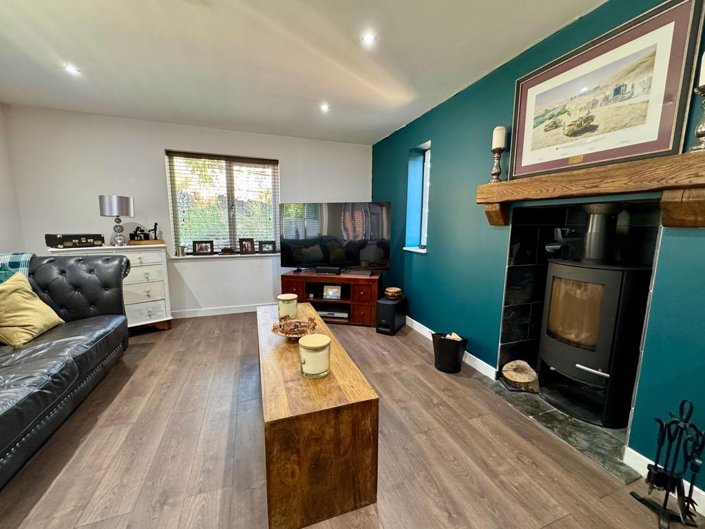 Triple aspect, double glazed windows to front, side and rear, underfloor heating, feature inset Oak mantlepiece with Multifuel Burner.