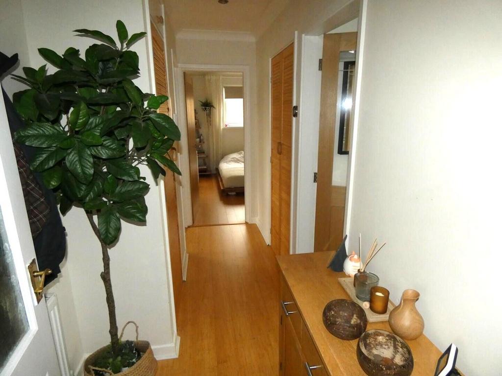 Hallway - UPVC exterior door opens into the private stairway with window to the rear, electric radiator and stairs up to the first floor landing with window to the front. Inner door opens into the hallway with two built in storage cupboards and housing the condensing combi boiler, loft access hatch and radiator.