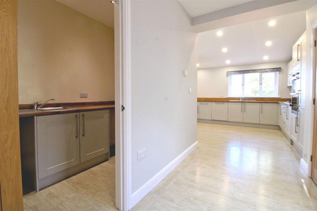 Kitchen/Dining Room - 7.87m x 7.14m (max) (25'10 x 23'5 (max)) - Bright and spacious room with a range of wall base and drawer units with worktop over. Integrated gas hob, dishwasher, and double oven. Large storage cupboard that houses the boiler. Tile effect flooring, French doors to the side aspect leading to the garden and two windows to the rear aspect.