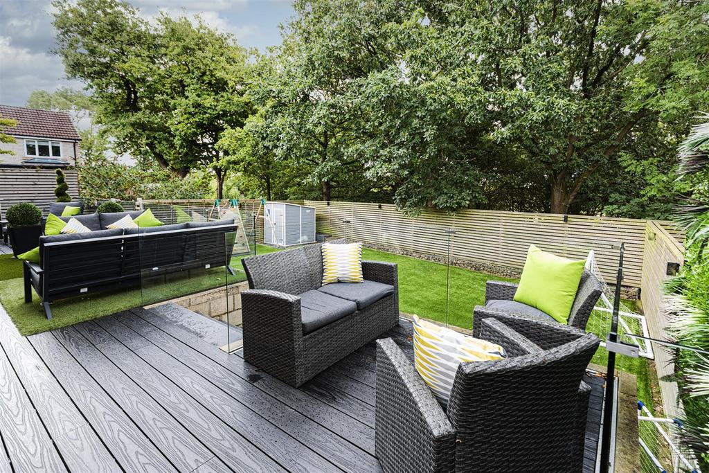 Exterior - The property is accessed via a gated shared driveway which leads to double garage with an electric remote control door and an electric car charging point externally. To the rear there is an enclosed well maintained artificial lawn and composite decking seating area. Ideal for families and outdoor barbecues.