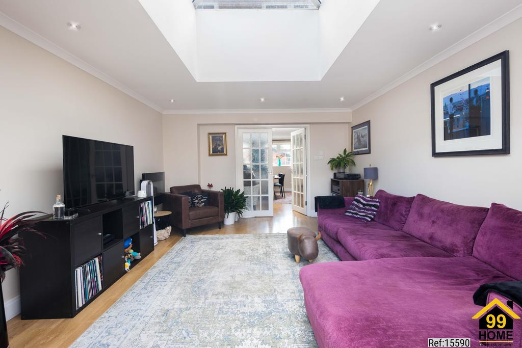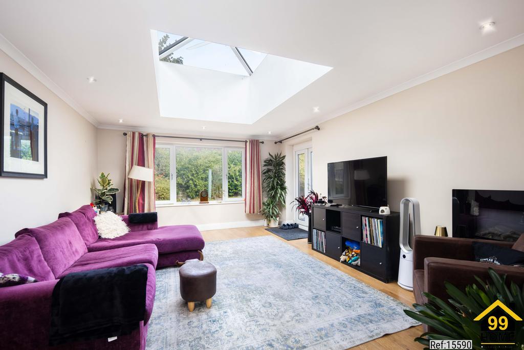 Spacious living room with stunning roof lantern, flooding the space with natural light