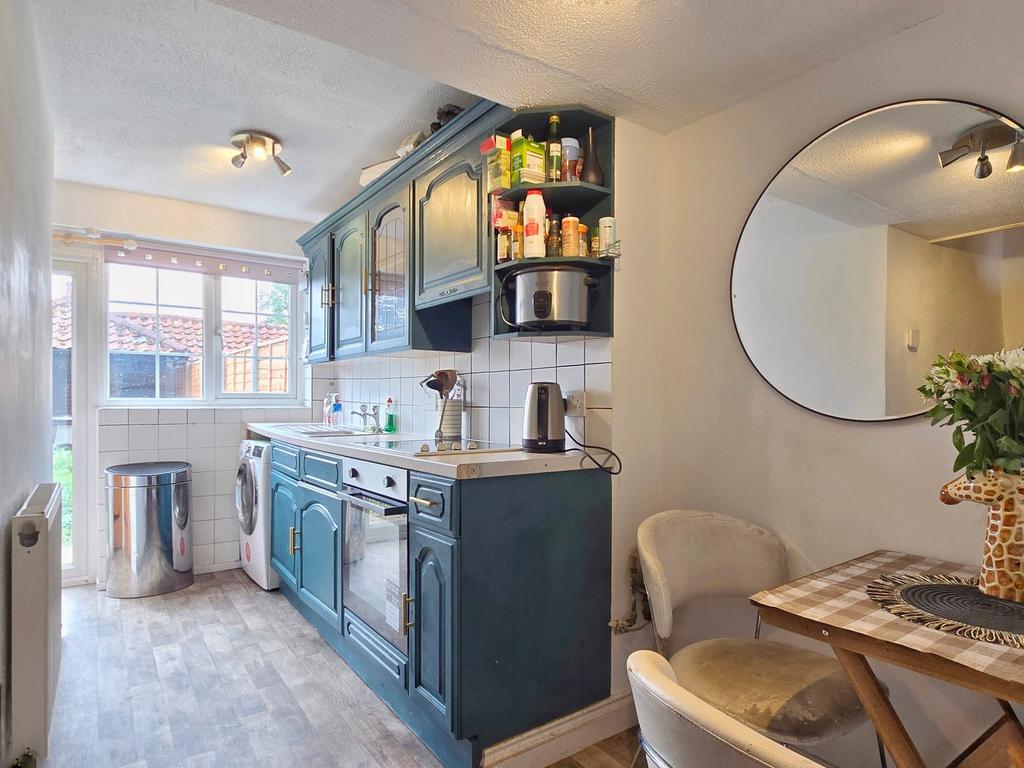 13' 7" x 5' 2" (4.14m x 1.57m) A range of base and wall mounted units with work surfaces over, stainless steel sink and drainer with mixer tap, integrated oven and hob with extractor over, cupboard housing boiler, French doors opening to the garden, double glazed window to the rear, radiator.