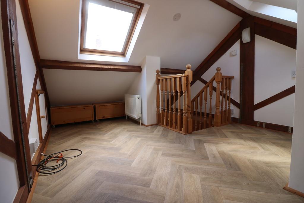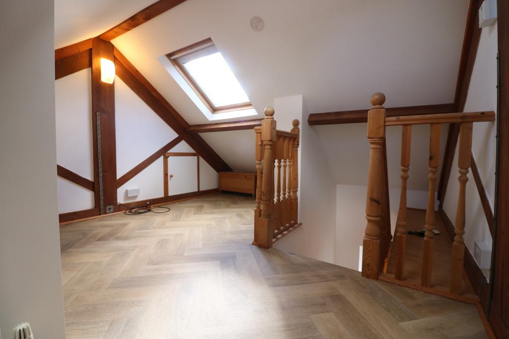 Further door off the hallway leads into a split level bedroom/study room with fitted wardrobes, understairs storage cupboard and stairs to the bedroom/study area with eaves storage.