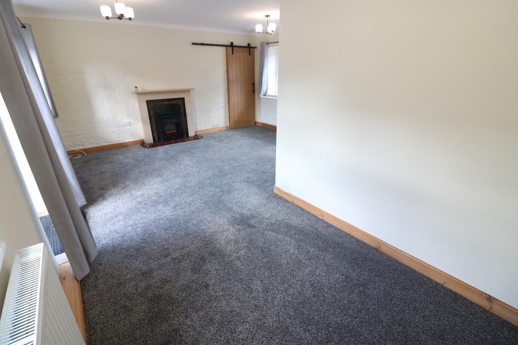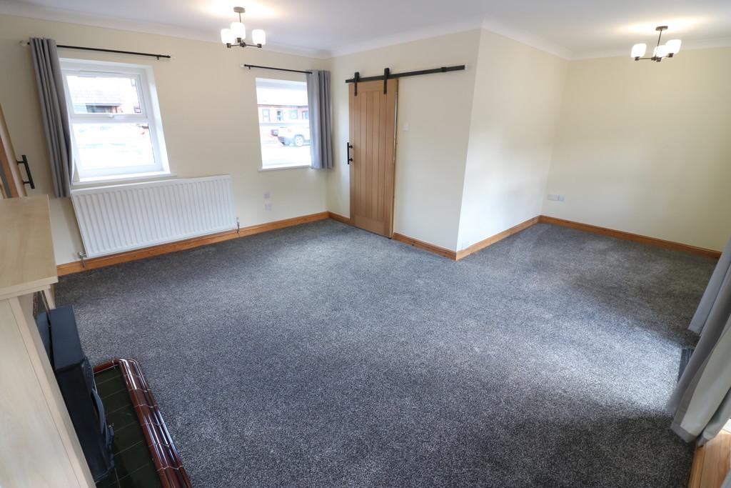 SPCIOUS LIVING/DINING ROOM with feature sliding wooden barn doors, coal effect electric fire with tiled hearth and wooden surround. Patio doors open onto a low maintence patio area.