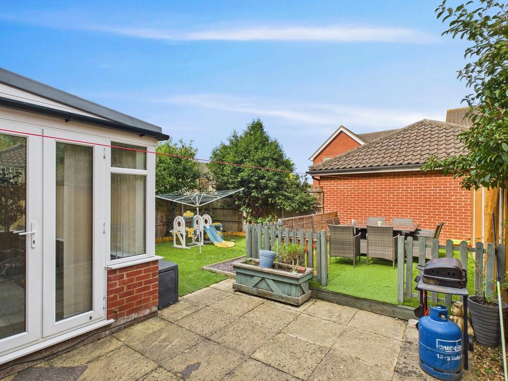 A spacious, detached four bedroom property with double garage and solar panels located within this popular development. The accommodation includes the entrance hall which serves the ground floor, front to back kitchen/diner and the lounge to the rear with sliding door to the garden room and then onto the garden. The office/snug completes the ground floor. The first floor landing serves the four bedroom, the master of which has built in wardrobes and an en-suite. The bathroom completes the layout. Externally there is a private driveway providing off road parking with a double garage. The rear garden is laid to astro turf with a patio and decked area inset all enclosed by fencing. Located with good access to the towns amenities and also the train station on the King’s Lynn to London King’s Cross line via Cambridge.