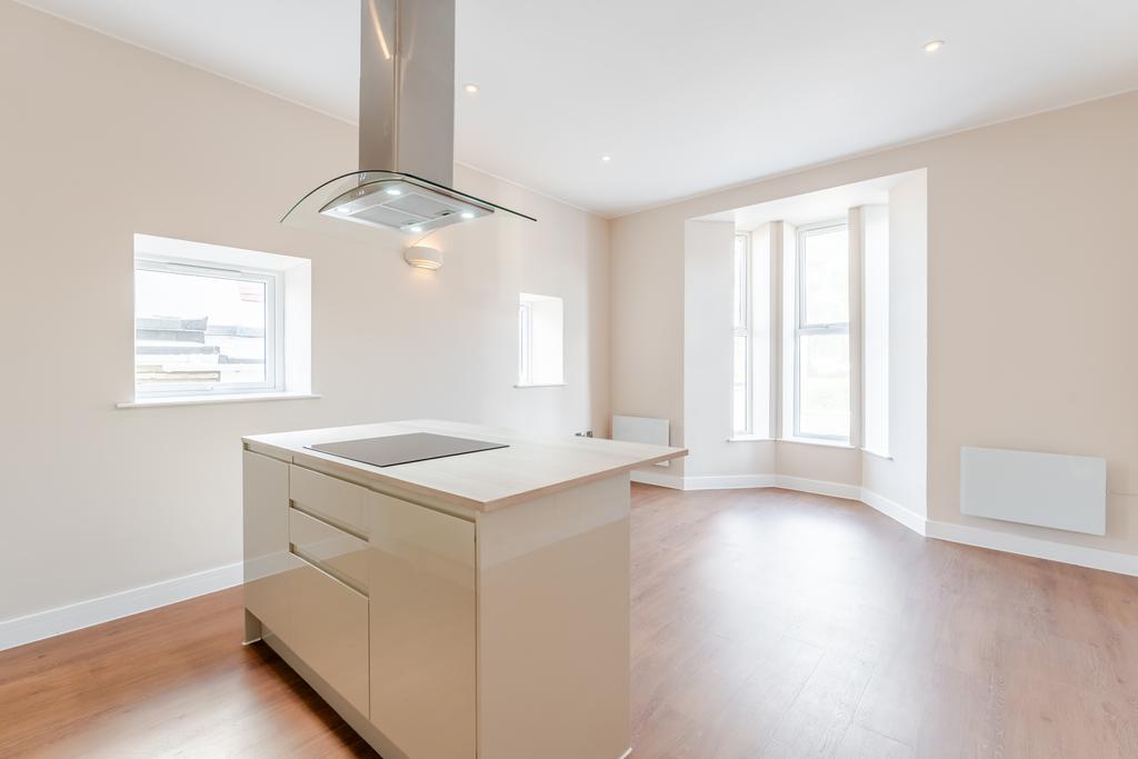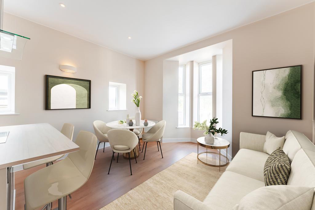 Located on the ground floor, Flat 1 boasts stunning views across Ellenborough Park through expansive floor-to-ceiling windows in the main living area. The open-plan layout seamlessly connects the living space with a modern kitchen featuring a central island and breakfast bar-perfect for entertaining.