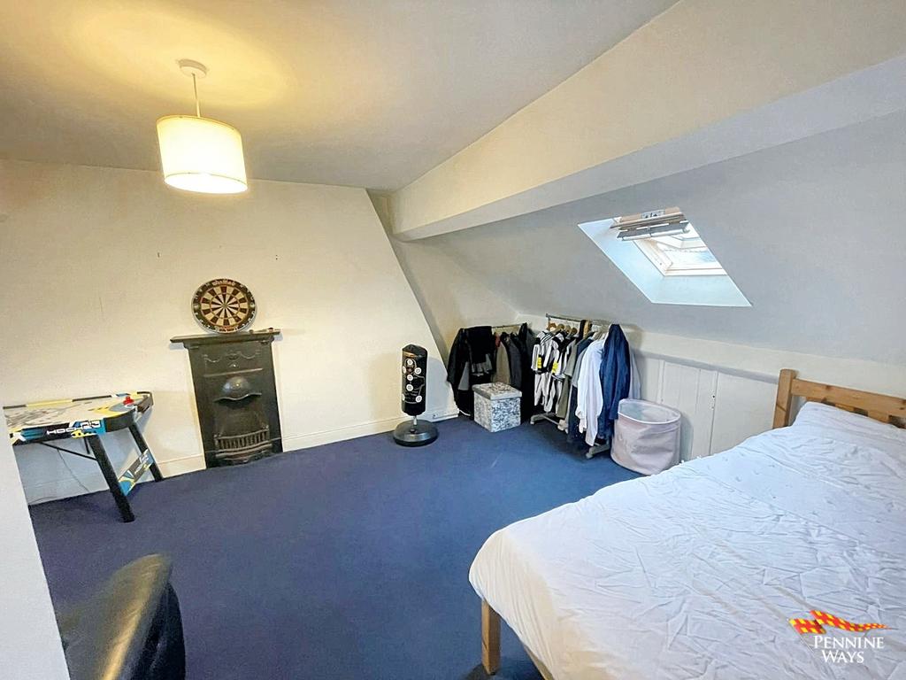 Expansive double bedrooms which would easily accommodate as the master bedroom. Carpet flooring, cast iron fireplace, Velux window, dormer UPVC double glazed window, carpet flooring and wood door.