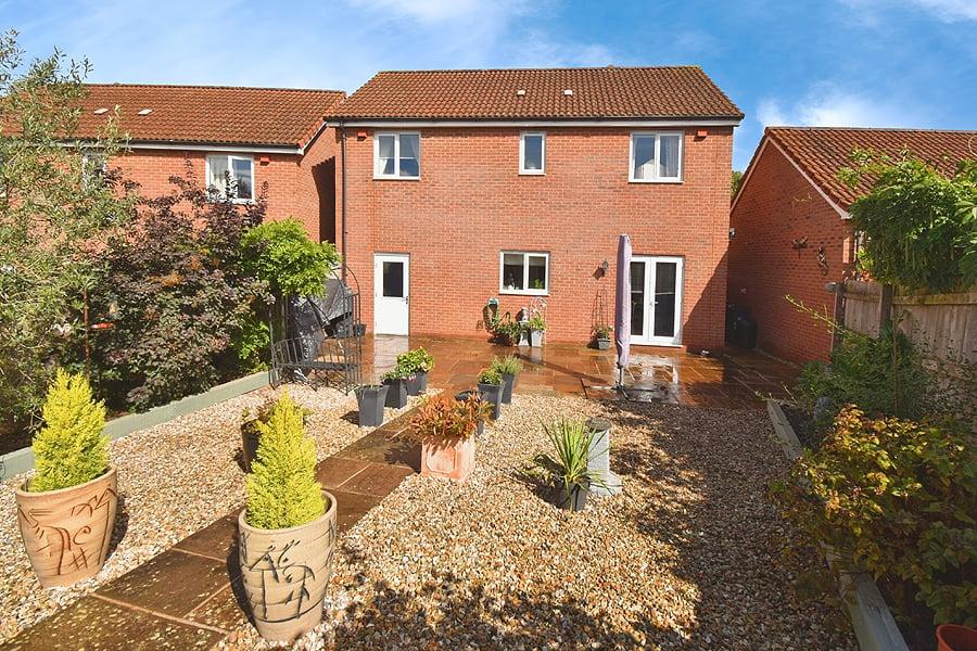 A beautifully presented modern detached family home occupying a fabulous position with pleasant outlook over neighbouring green. Well proportioned living accommodation. Four good size bedrooms. Ensuite shower room to master bedroom. Family bathroom. Reception hall. Ground floor cloakroom. Spacious sitting room. Modern kitchen/dining room. uPVC double glazing. District heating. Private driveway. Good size integral garage. Enclosed easy to maintain landscaped rear garden. Convenient position providing good access to local amenities, mainline railway station and major link roads. A great family home. Viewing highly recommended.