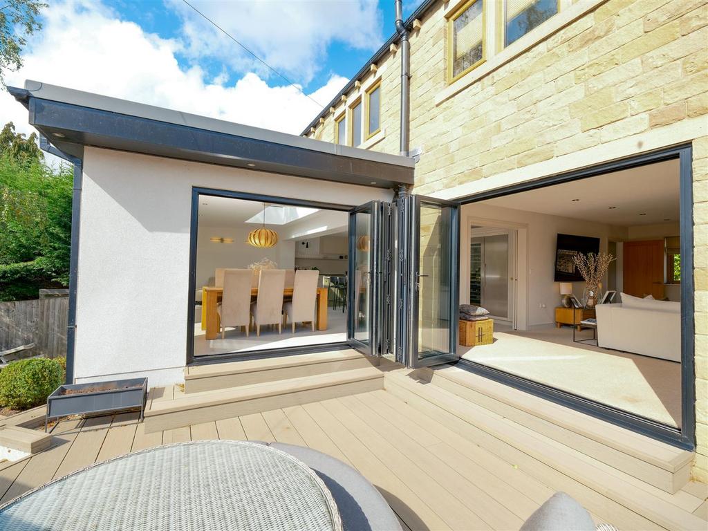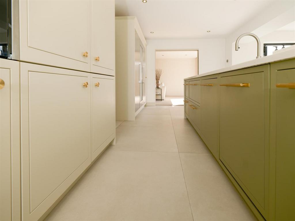 Living Dining Kitchen - 7.44m x 7.06m (24'5" x 23'2") - This huge space which is over 500 square feet has been fitted with a very high end kitchen with large island unit in a pale quartz with integral sink and Quooker boiling water tap with a tiled floor and under floor heating. Appliances include stainless steel fridge, freezer, dishwasher, oven and range cooker. Bi-fold doors open to the garden and an inner door to the utility. Plenty of space for dining table and sofas etc... Bi-fold doors and windows look over the garden towards the viaduct.