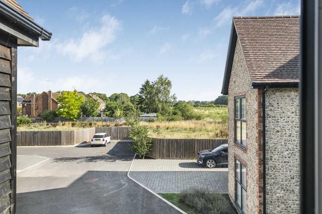 Situated in a quiet cul-de-sac which features just one other house, 2 Flint Close was built in 2022 by a local family, and lovingly upgraded in the few years since then. Built in a quintessential Chilterns style of black-painted wooden siding and brick and flint, a paved path leads up past attractive planting, to the portico and hardwood front door.