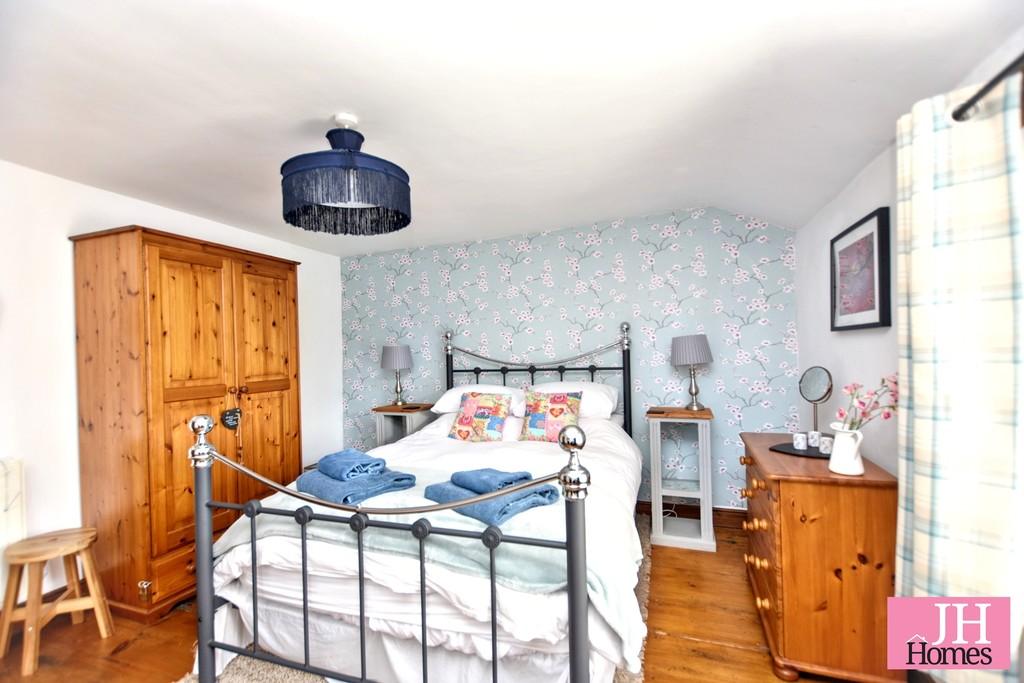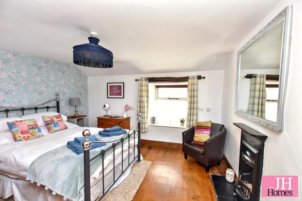 BEDROOM 12' 4" x 13' 5" (3.76m x 4.09m) Feature papered wall, stripped wood flooring and a decorative fireplace feature with slate hearth making a lovely focal point to the room. Double radiator, double glazed window with deeper sill to front and a wooden lintel offering pleasant view of the village.