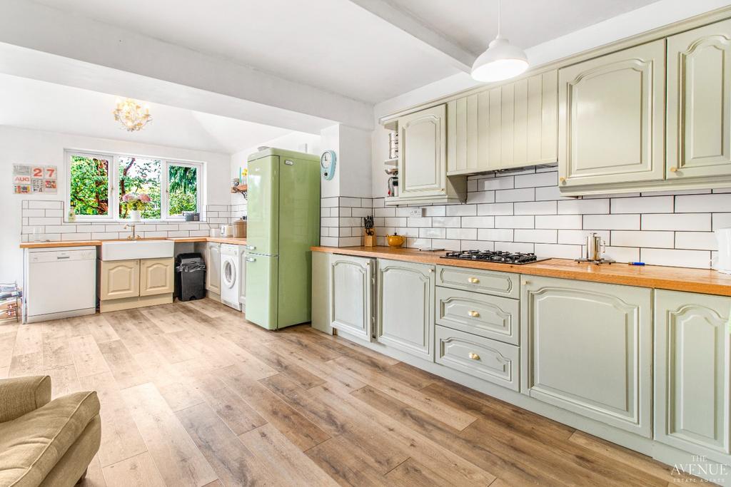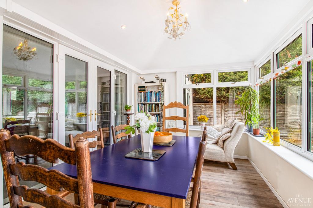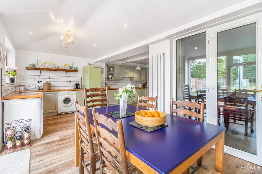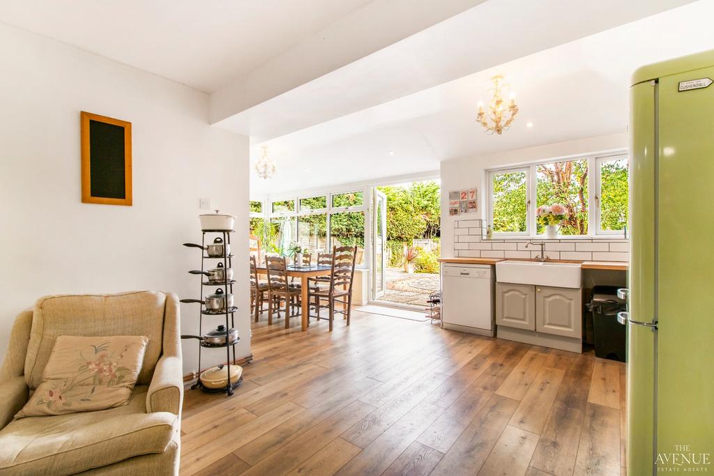 - Bright L-shaped kitchen/dining room with French doors to the garden