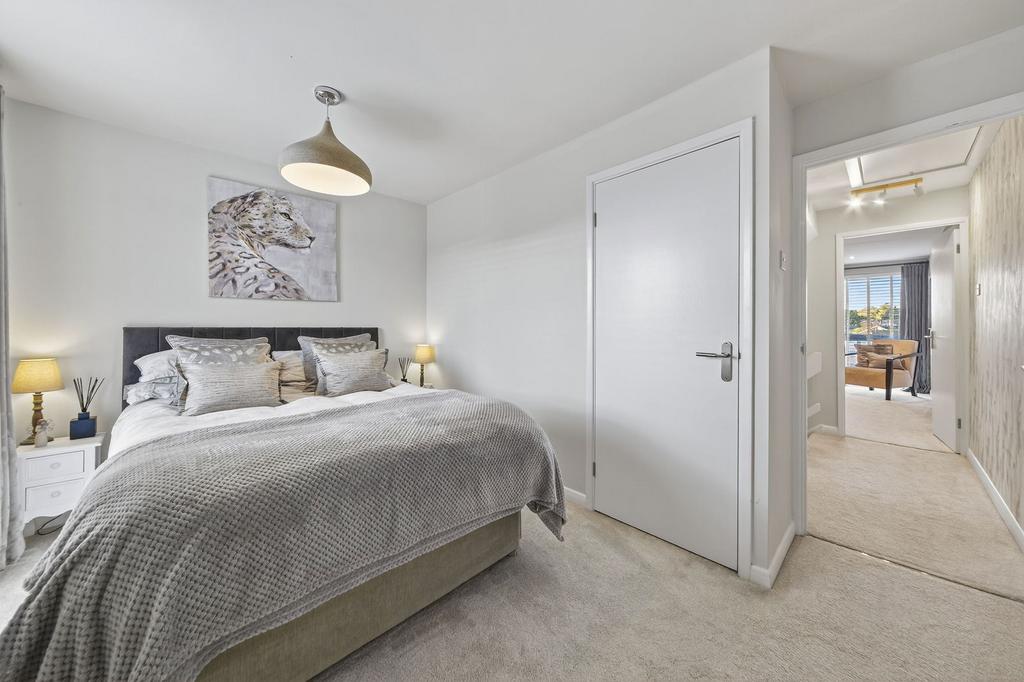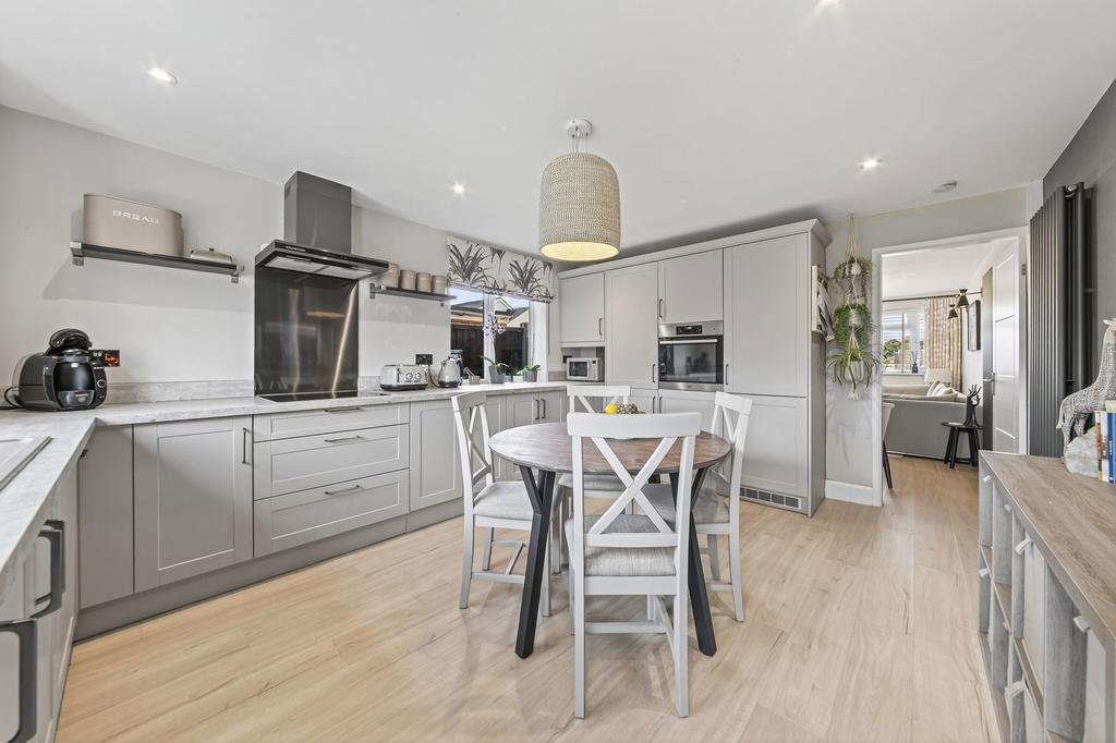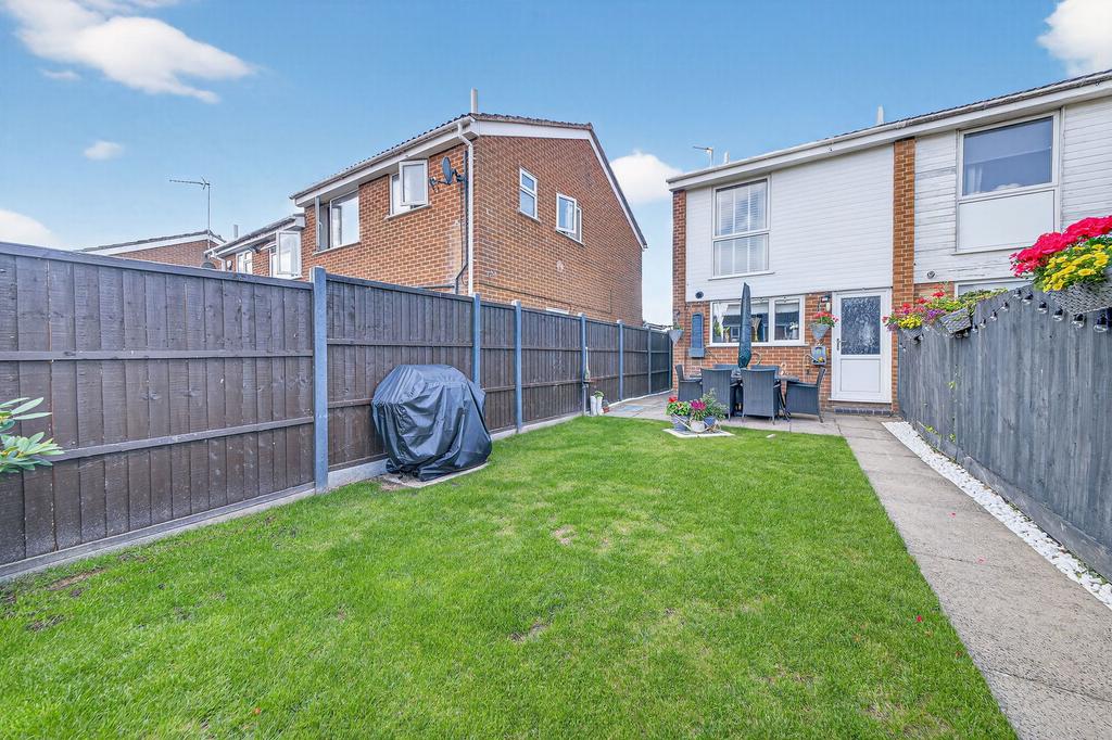 -Outside a block paved driveway provides parking for two cars, with an additional allocated space in the parking quadrant to the left of the property and two private spaces at the rear. The rear garden offers a generous patio at the front and a pebbled area at the back, perfect for outdoor furniture and entertaining, finished with a well-manicured lawn