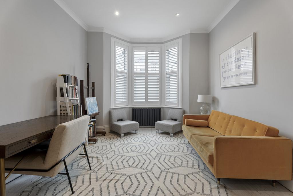The two ground-floor reception rooms have been opened up between the twin bay windows to create a sociable space to get together.