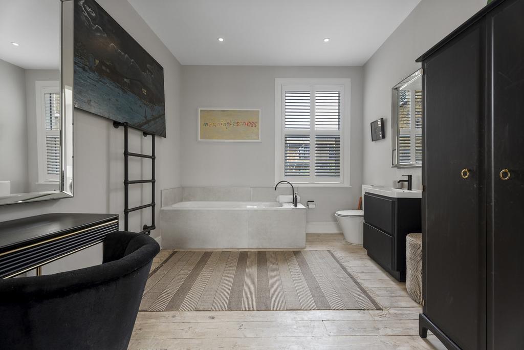 Upstairs, the bay-fronted master bedroom is a standout, with a generous ensuite bathroom and a dedicated dressing space. It’s front facing but blissfully quiet, thanks to the brand new windows with additional secondary glazing.
