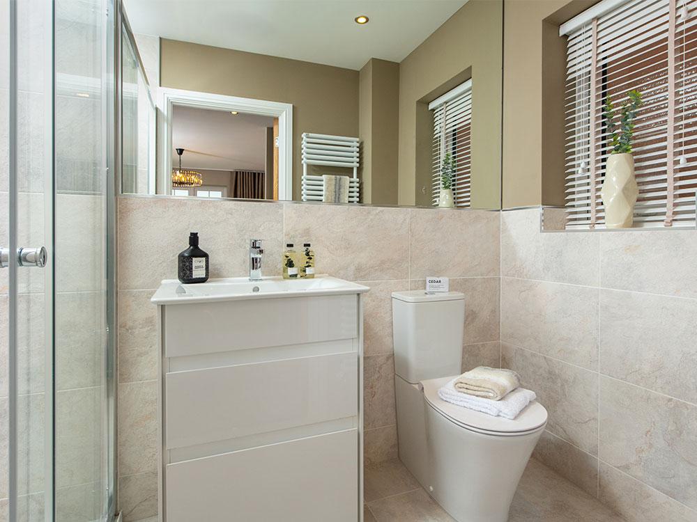 - Porcelanosa tiles and rainfall shower to main bathroom