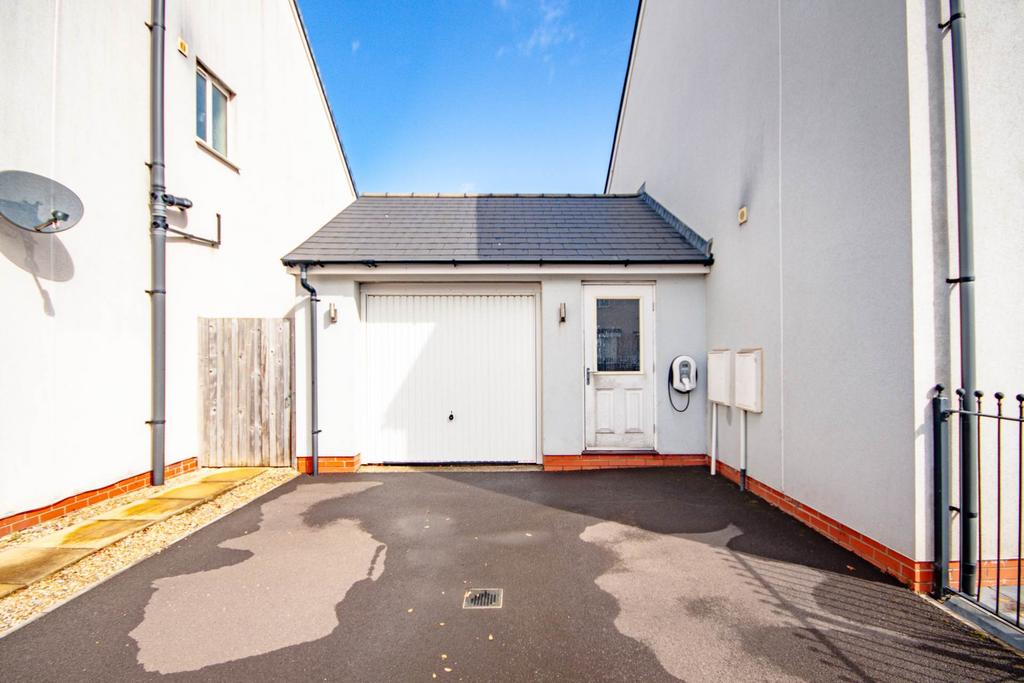 Up and over door and pedestrian access to front. Storage to eaves. Power and light. Pedestrian access to garden.