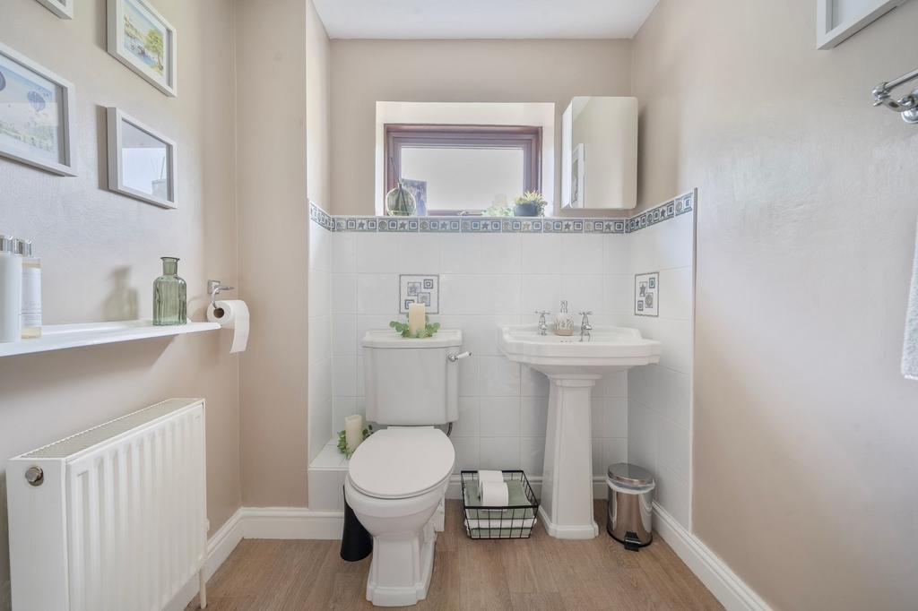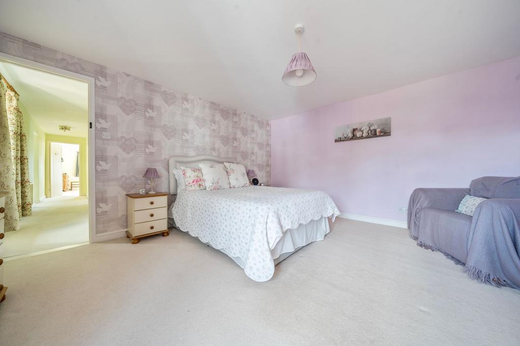 Upstairs, a spacious landing leads to four generously proportioned double bedrooms. The principal bedroom is a standout feature, with a wall of fitted wardrobes and commanding views across open countryside and the Mendip Hills, scenery that truly must be seen in person to be fully appreciated. A modern family bathroom with a three-piece suite completes the upstairs accommodation.