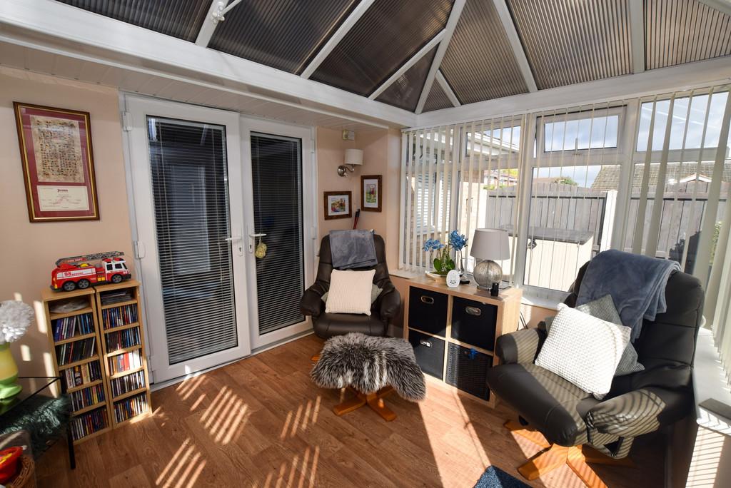 A door from the Lounge leads into an inner Hall with cupboard and door to the Shower Room with modern white three piece suite. Bedroom Two is accessed from this inner Hall. Bedroom One, accessed from the Dining Room, overlooks the front and formerly the Garage, is a welcome improvement to the space available within this Detached Bungalow. Gas Central Heating and Double Glazing further compliment the accommodation.
