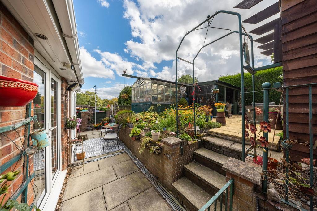 The south facing back garden offers much more than just the usual lawn and patio. Thanks to extra land at the rear, it’s much longer than many others on the street. It’s already been cleverly divided into distinct zones, but can easily be opened up if you prefer one larger space. There are raised beds, a built-in BBQ station under a wooden canopy and the greenhouse is a real bonus for anyone who loves growing their own.