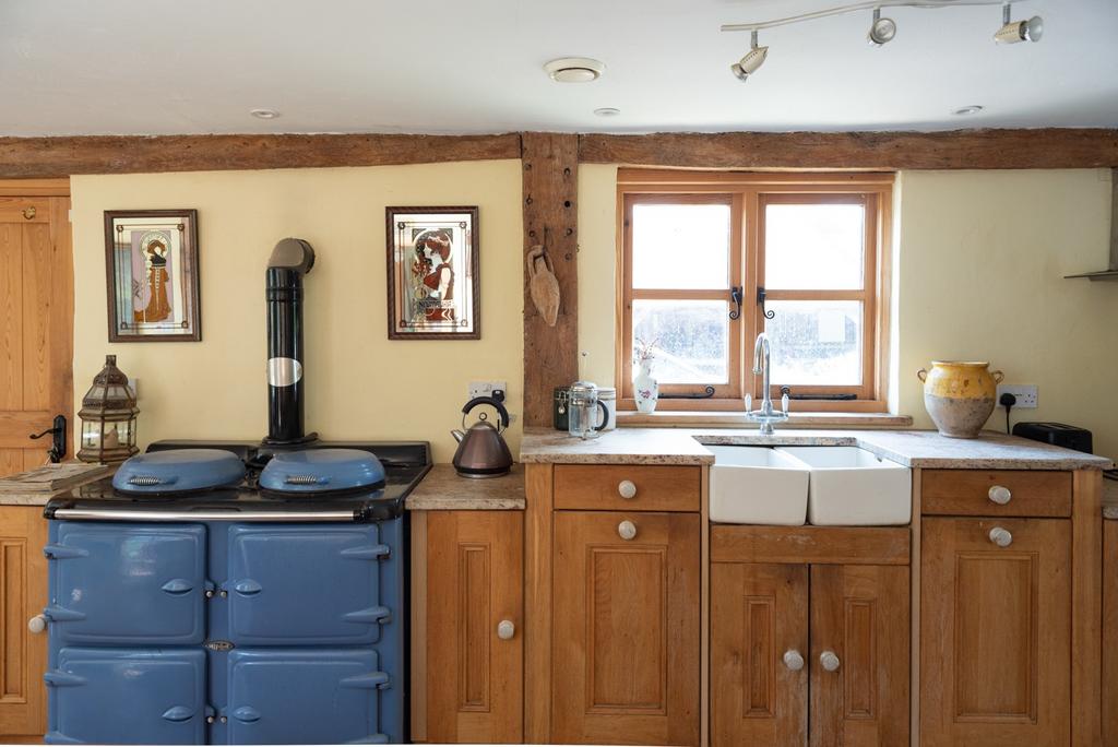 - Country style kitchen with bespoke oak fittings, Butler sink, Alpha cooker & marble worktops