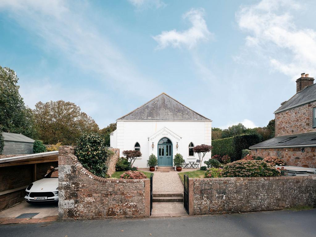 Once a 19th-century country chapel, La Chapelle has been beautifully and sympathetically converted into a striking three-bedroom home full of charm and character. Tucked away on the Trinity/St Saviour border, it offers both privacy and convenience, with original architectural features thoughtfully combined with modern comforts. The vast open-plan living space, complete with a minstrel gallery, forms the heart of the home, while the principal suite provides a peaceful retreat. With landscaped gardens, open field views, and excellent storage throughout, this unique sanctuary is perfect for those seeking a distinctive rural property within easy reach of St Helier.