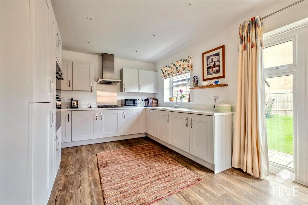 A feature return staircase leads to the first floor, where you’ll find four well-proportioned bedrooms. The principal bedroom includes fitted wardrobes with sliding mirrored doors and a luxurious en-suite shower room. The three additional bedrooms are all of a good size and are served by a modern, well-appointed family bathroom.
