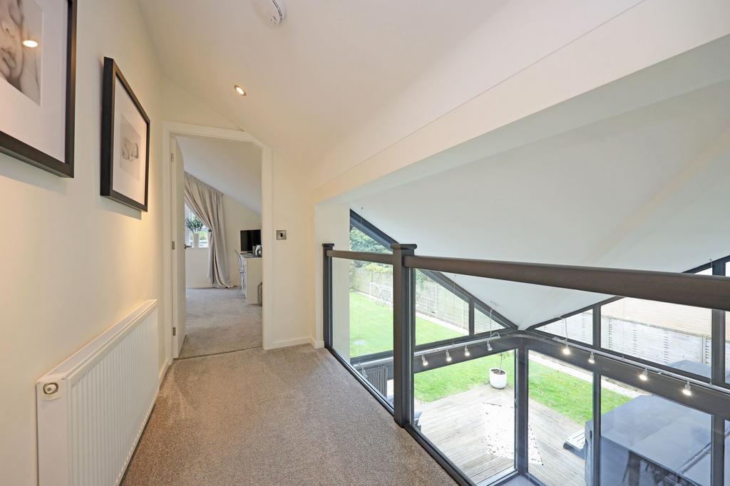 Returning back to the main landing there is another galleried outlook onto the family dining area below. The master bedroom situated to the rear of the property, with a vaulted ceiling enjoys a glazed apex window incorporating Juliet balcony overlooking the rear garden. It is fitted with a dressing table and bedside cabinets and a matching style ensuite incorporates another walk in shower with contrast tiling to walls, vanity wash basin and WC. The two remaining bedrooms ideally suited for a growing family comprise a further feature bedroom with double height window and staircase with glass balustrade to a mezzanine level sleeping area, fitted with matching style wardrobe, shelving and drawer units. The fourth double bedroom has further fitted wardrobe/drawer units and a window to the side elevation with additional skylight within a partial vaulted ceiling. Between these two bedrooms there is a luxury family bathroom with feature tiling and comprises a four piece suite with bath, walk in shower, wall hung vanity wash basin and WC.