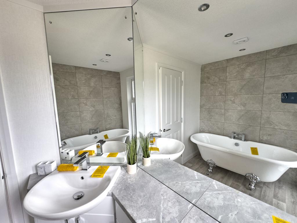 This brand new, modern furnished Stately Wentwood (40'x20') luxury lodge is perfect for those looking for a detached, easy to maintain, bungalow-style leisure lodge. The lodge has a spacious and modern kitchen with integrated appliances, dining area and living room with large windows and an electric fireplace. The home has two double bedrooms, an en suite and a bathroom.