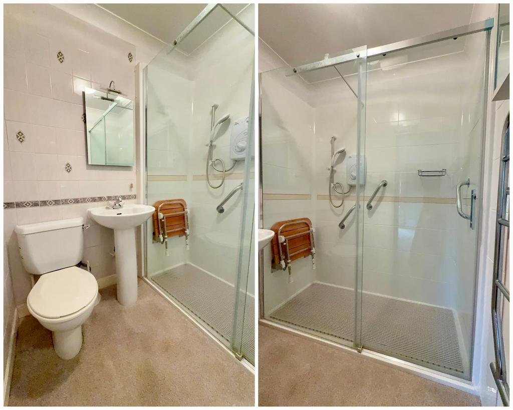 BEDROOM 1 with window to the side overlooking the communal grounds and built-in double wardrobe with mirror fronted doors. EN-SUITE with walk-in low threshold shower, wash basin and WC. Part tiled walls, heated towel rail and extractor fan. BEDROOM 2 with window to the side overlooking the communal gardens, display shelving and built-in double wardrobe. SHOWER ROOM with wash basin, WC and step up to a shower cubicle. Heated towel rail and extractor fan.