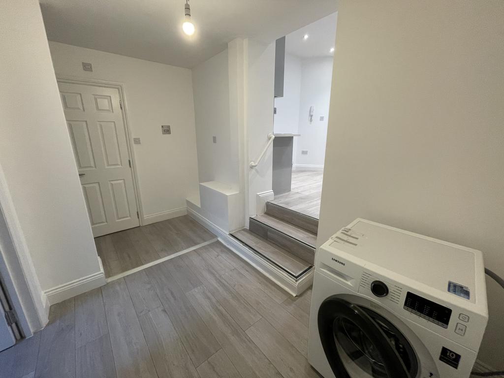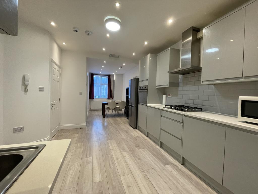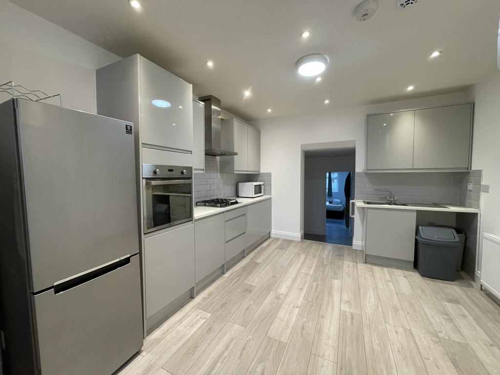 Grey wooden flooring throughout,Ceiling spotlights, c/h Radiators, Double glazed window overlooking the front aspect, modern kitchen units with Kenwood double oven,chimney style extractor hood above, 4 ring gas oven, integrated fridge freezer,microwave, sockets and power points