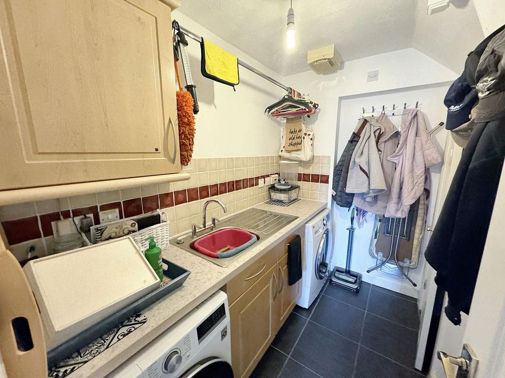 Work surface with stainless steel sink with mixer tap. Spaces under with plumbing for automatic washing machine and tumble dryer. Tiled splash areas. Boiler programmer. Extractor. Understairs storage cupboard. Tiled floor. Radiator. Ceiling light point. Alarm control panel.