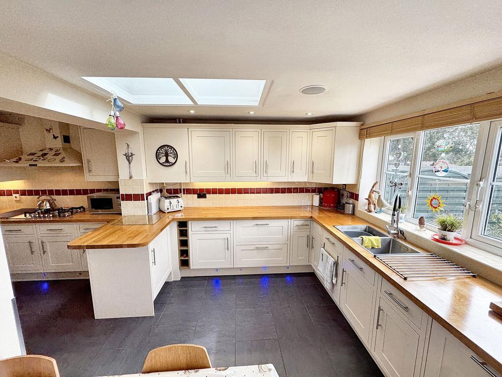 Double glazed patio doors and windows to the rear garden. Two wall light points. Spotlights. Radiator. Double glazed skylight window.