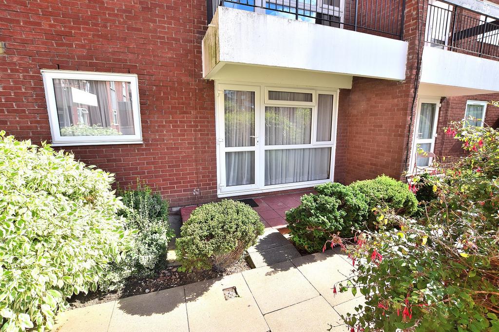 RECEPTION: Grey laminate flooring, radiator, double glazed door and picture window to rear aspect facing communal gardens and private patio.