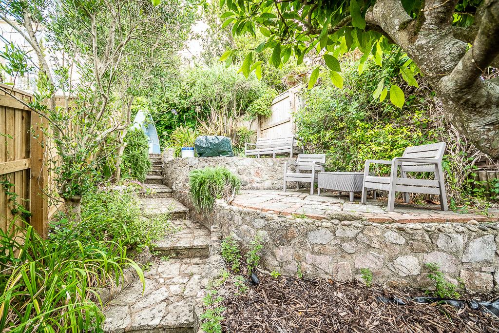 The rear garden is beautifully landscaped in a Mediterranean style. Terraced with well stocked flowerbeds, charming seating areas, with a path leading through the scents of lavender and rosemary, and the visual delights of olive trees, magnolia and a fig tree. A patio area extends the entertaining space from the garden room.