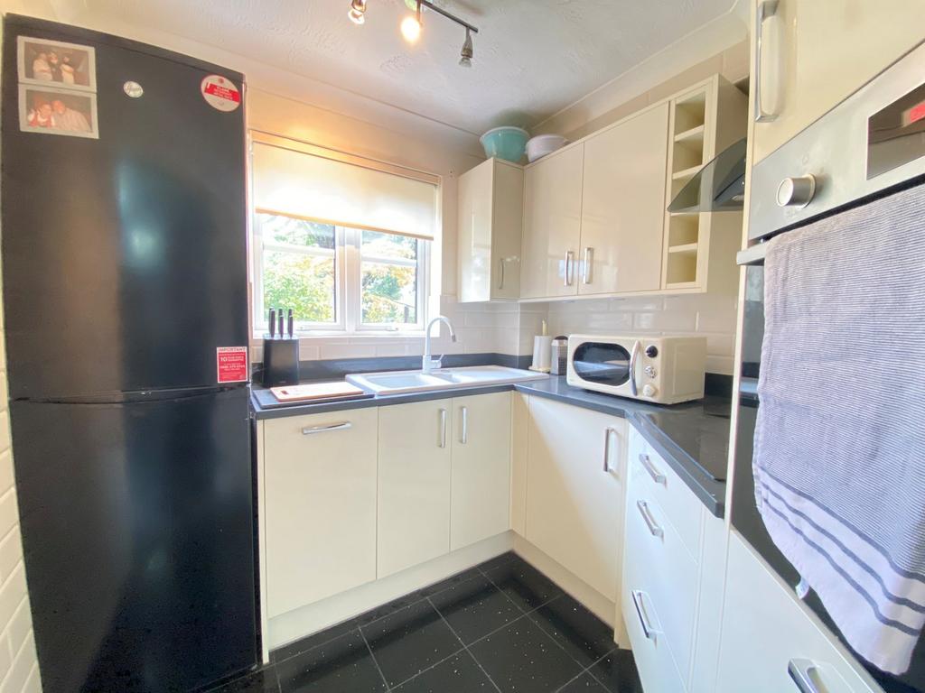 2.45m x 2.28m (8' 0" x 7' 6") Re-fitted and updated with a large range of wall and base units, drawers, work tops over, sink and mixer tap, electric stainless steel oven, electric hob and stainless steel extractor hood, wine rack, space for fridge/freezer, recycling bins, emergency pull cord system.