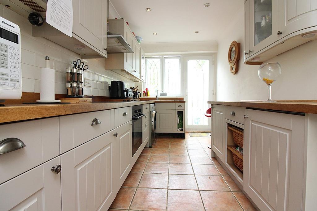 Abt. 13' 11" x 7' 6" (4.24m x 2.29m) The kitchen comprises a good range of eye and base level shaker style units with solid wood worksurfaces. Inset single drainer stainless steel sink unit. Built in electric oven, hob, and extractor hood. Plumbing for automatic washing machine. Cupboard housing an oil fired boiler. Tiled splashback area. Double glazed door and window to rear garden. Inset ceiling lights. Coved ceiling. Tiled flooring.