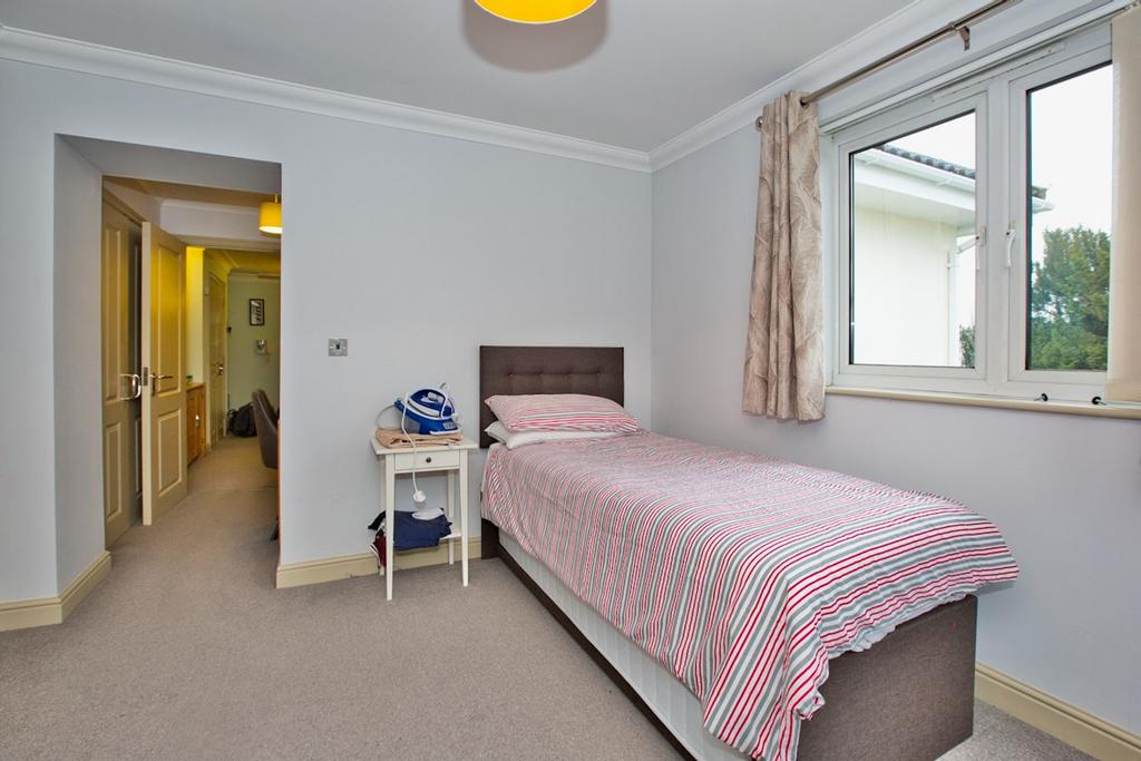 This double bedroom offers lovely views over the communal garden and includes a built-in wardrobe. There's also an additional entrance space that can be utilized for a desk, making it perfect for work or study.