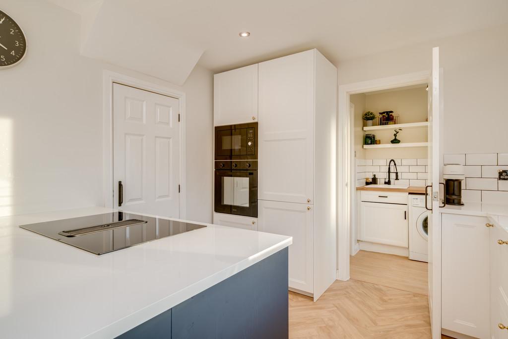 DINING KITCHEN 18' 10" x 9' 11" (5.74m x 3.02m) Fitted with a range of wall and base units with complementary work surfaces, splash back tiling and an inset ceramic sink with a mixer tap. An island unit provides additional seating and incorporates additional storage cupboards and an induction hob with a built-in extractor. There is a suite of integrated appliances which includes a fridge/freezer, electric oven, microwave and a dishwasher. Additional features include inset spotlights to the ceiling, vinyl flooring and patio doors which lead out to the rear garden.