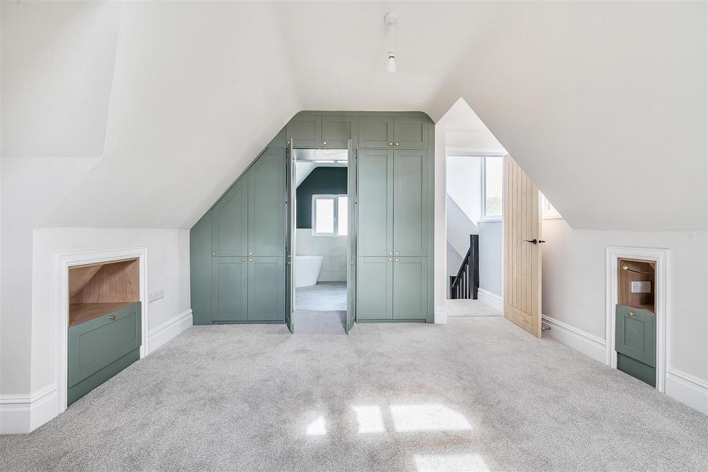 Upstairs, the property provides versatile accommodation arranged over two floors. The first floor hosts three well proportioned bedrooms, all served by a contemporary family bathroom. Occupying the entire second floor, the principal suite offers a private retreat, complete with built-in storage and a luxurious ensuite bathroom. This thoughtful layout ensures ample space for both family living and guests.