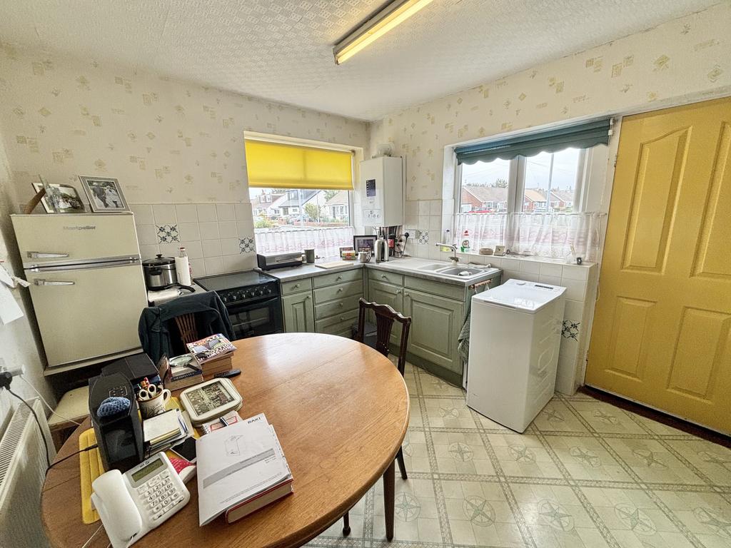 UPVC double glazed windows and exit door to the side aspect. Fitted kitchen with a range of wall and base units with complementary work surfaces, space for free standing oven with hob, space for fridge/freezer and wall mounted radiator.