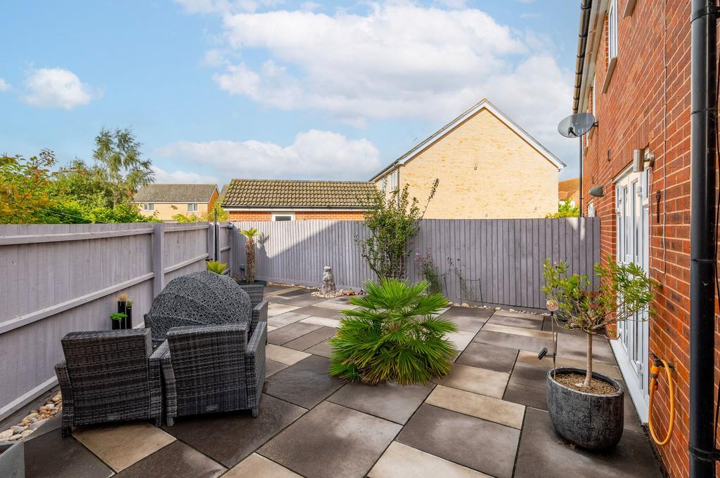 - South-facing rear garden, fully paved with large modern slabs for low maintenance living