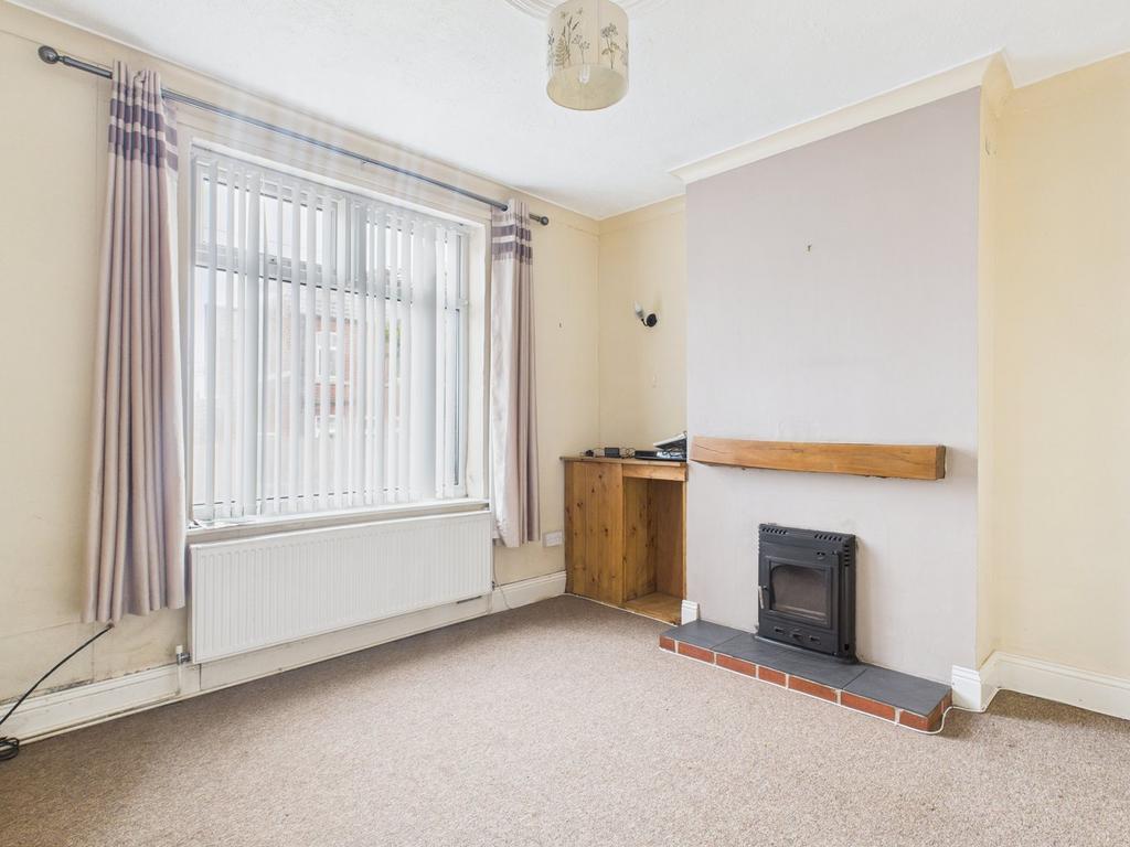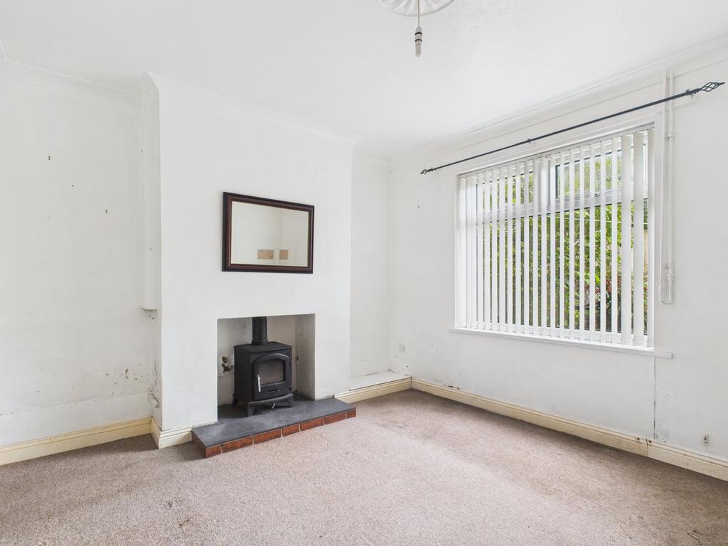 Accessed from the driveway via a uPVC door. Carpet flooring, radiator, pendant light, uPVC window to front elevation and door leading to stairs. Benefitting from a wood burner, with tiled hearth and wooden lintel over.