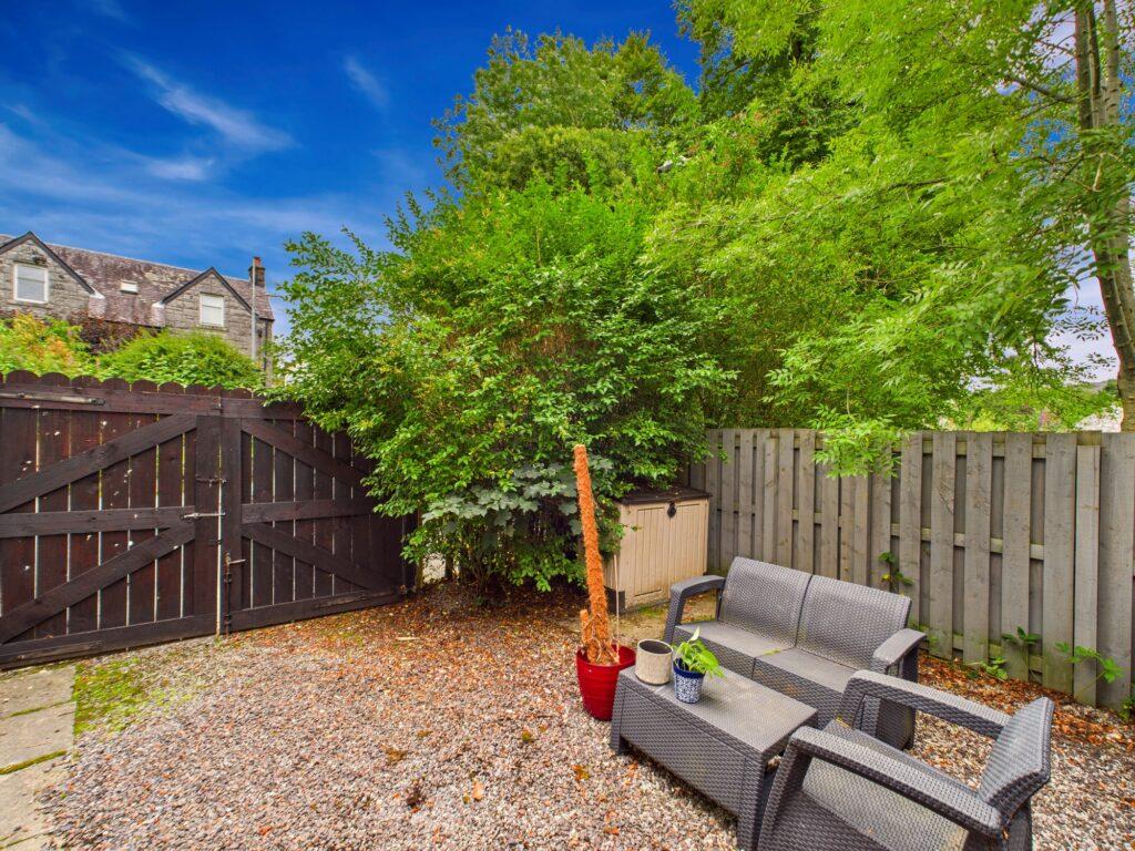 To the front of the property a gated entrance gives access to the stone chipped driveway (currently utilised as a patio style seating area). There is free on road parking at the front. Through the outbuildings leads to the private and peaceful rear garden grounds. There is a slabbed patio area with lots of space for outdoor furniture and bbq equipment. The studio is in situ with a further log and refuse storage space at the other side. Steps guide you down to a large stone chipped area surrounded by established trees and with the stream flowing along below. There is fencing enclosing the full boundary ensuring safety of children and pets. A barked bedding area features shrubs and uplighting. There is a large cooking apple tree and various annual flowering bushes dotted around. A timber shed in situ providing further storage space.