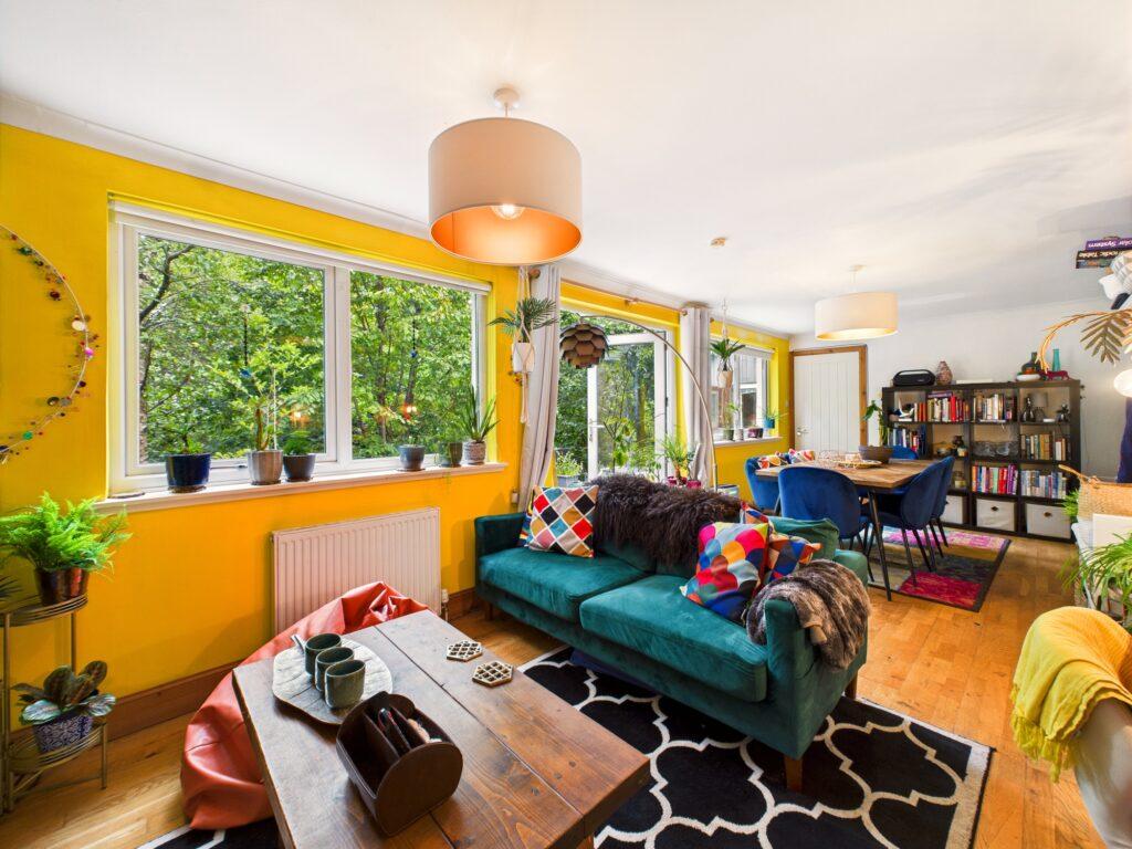 Open plan space accessed by 3 steps from the living room or kitchen. Dual windows to rear gardens and patio door access to outdoor seating area. This room offers lots of daylight and space for lounge and dining furniture. Dual pendant lights, two central heating radiators, socket points and small loft hatch access. Decorative wallpaper to one wall, two inbuilt storage cupboards, tv point and access to rear porch and utility with WC.