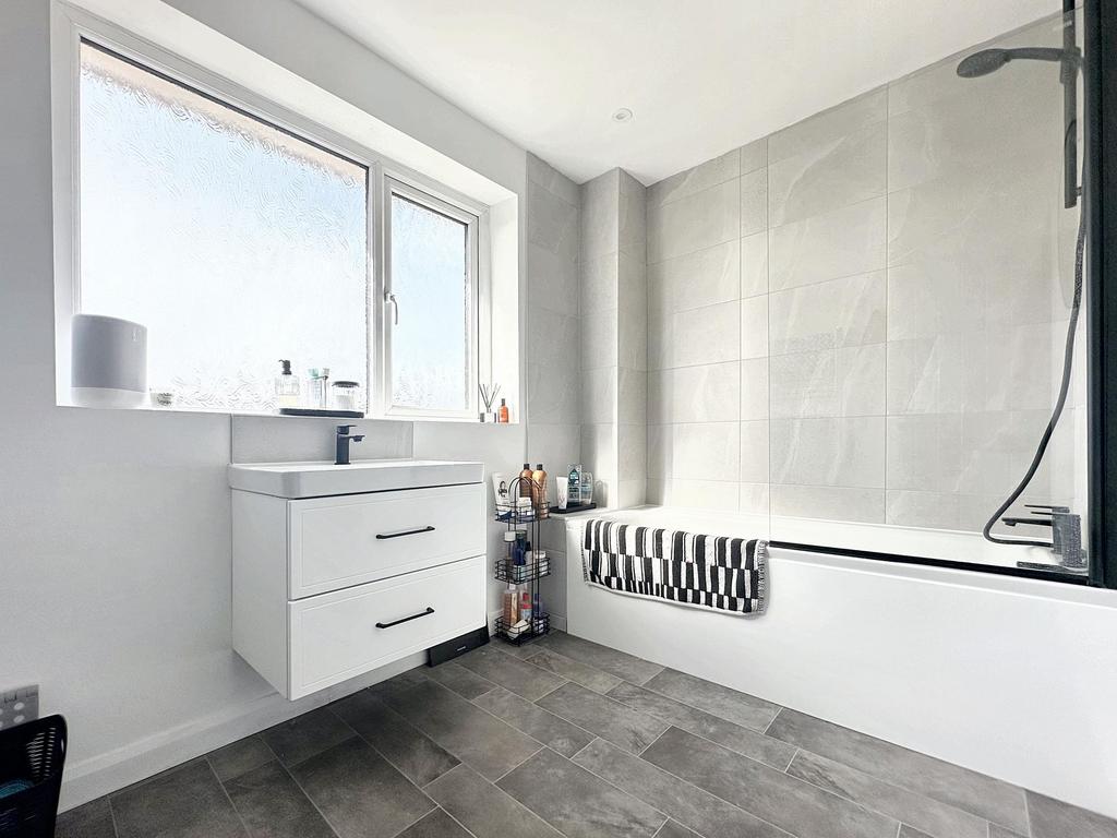 On the first floor are 3 double bedrooms and a nicely fitted bathroom. The landing has a hatch to the loft space. Beyond the interior, the house boasts a desirable west-facing rear garden. The property also includes an integral garage, perfect for storing vehicles or converting into additional living space, adding versatility to the home. A new driveway with parking for two vehicles, complete with an electric vehicle charging point, ensures residents have convenient parking options for their modern lifestyle needs.